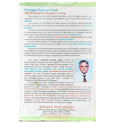 Environmental Engineering: Sewage Disposal And Air Pollution Engineering (Volume - 2) provides the reader with details on the treatment of domestic and industrial wastewater and the description of various air pollutants and the many technologies that are used in controlling them. Summary Of The Book Sewage disposal deals with the collection and systems of transporting sewage to sewage treatment plants in order to protect public health and prevent the outbreak of diseases. Air pollution engineering has two major aspects, air pollution control and air quality engineering. Air pollution control is aimed at the identification and prevention of emissions that pollute the air while air quality engineering deals with the large-scale and varied control strategies that focus on the physical and chemical aspects of the interactions of pollutants in the atmosphere. Environmental Engineering: Sewage Disposal And Air Pollution Engineering (Volume - 2) explains to the reader in detail the techniques related to the treatment of wastewater with reference to water pollution. It also discusses the disposal of solid wastes including hazardous radioactive and bio-medical wastes covering the topic of land pollution. Furthermore, the reader is also introduced to the various types of air pollutants, their harmful effects such as global warming, ozone layer depletion and acid rains and the technological methods being used in controlling air pollution. The book also discusses the impact of mining and thermal power plants on the environment. Environmental Engineering: Sewage Disposal And Air Pollution Engineering (Volume - 2) is divided into 28 chapters and has a bank of over 600 questions along with the answer key. These questions are the ones that a student is most likely to come across in the Engineering Services competitive exams and the AMIE exam. It is a handy reference for students in the fields of civil, environmental and chemical engineering