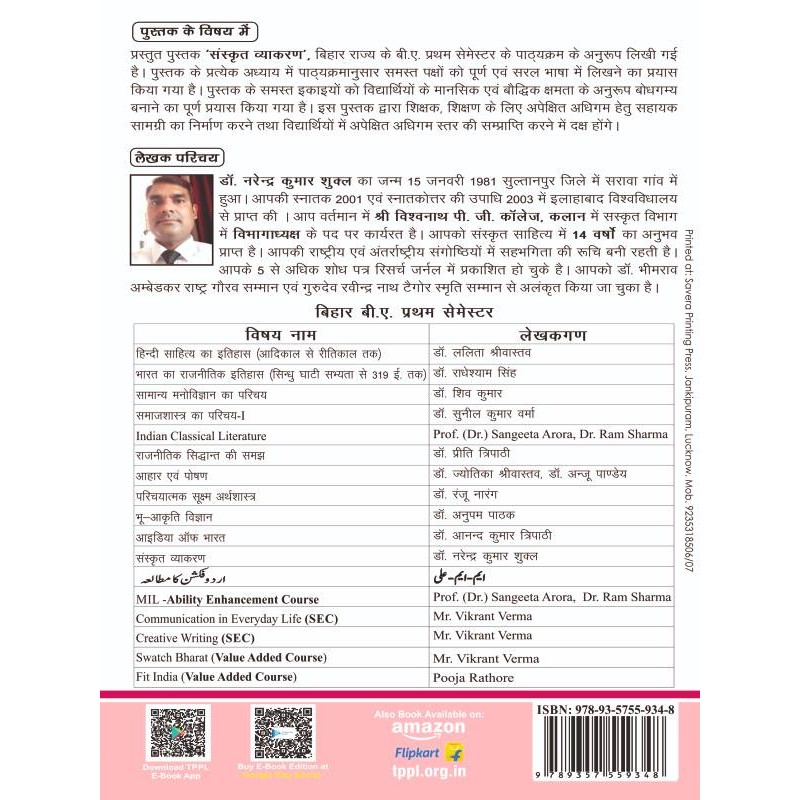 Sanskrit Vyakaran Sanskrit Language for B.A 1st Semester Bihar State | By Dr. Narendra Kumar Shukla | 2024 Edition | Sanskrit Medium | Thakur publication