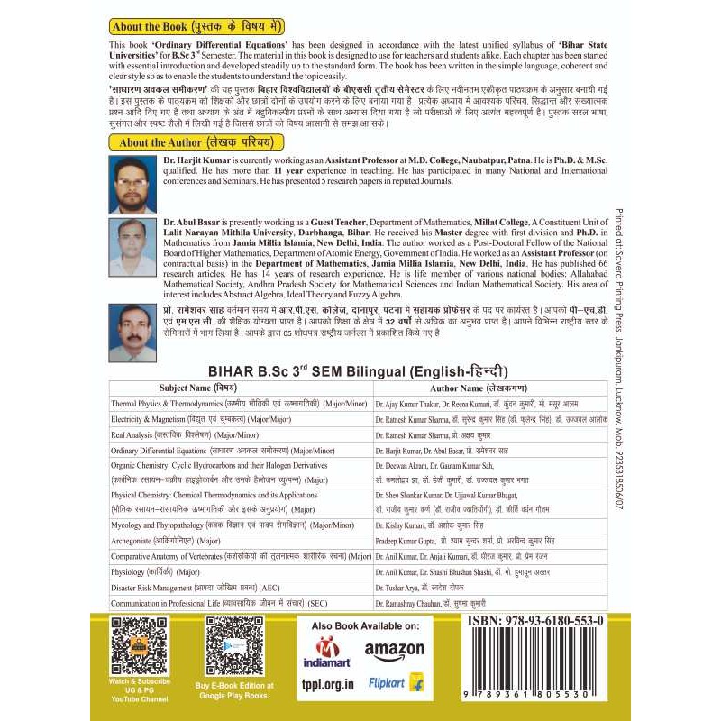 ORDINARY DIFFERENTIAL EQUATIONS (साधारण अवकल समीकरण) By Dr. Harjit kumar, Dr. Abdul Basar & Prof. Rameshwer Shah