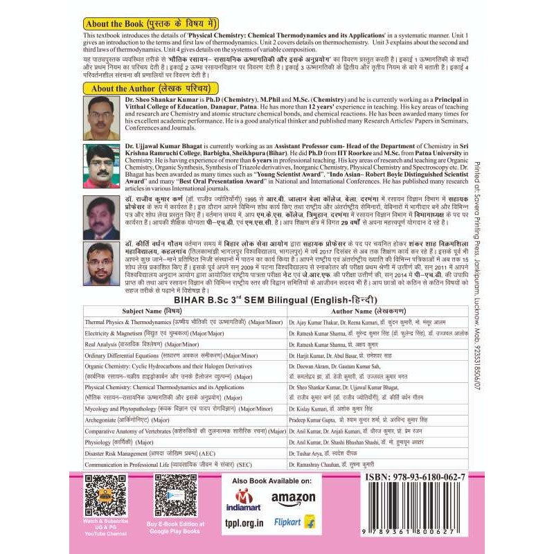 Physical Chemistry : Chemical Thermodynamics And Its Applications | By Dr. Sheo Shankar Kumar, Dr. Ujjwal Kumar Bhagat, Dr. Rajiv Kumar Karn & Dr. Kritivardhan Gautam | 2024 Edition | Hindi Medium | Thakur Publication