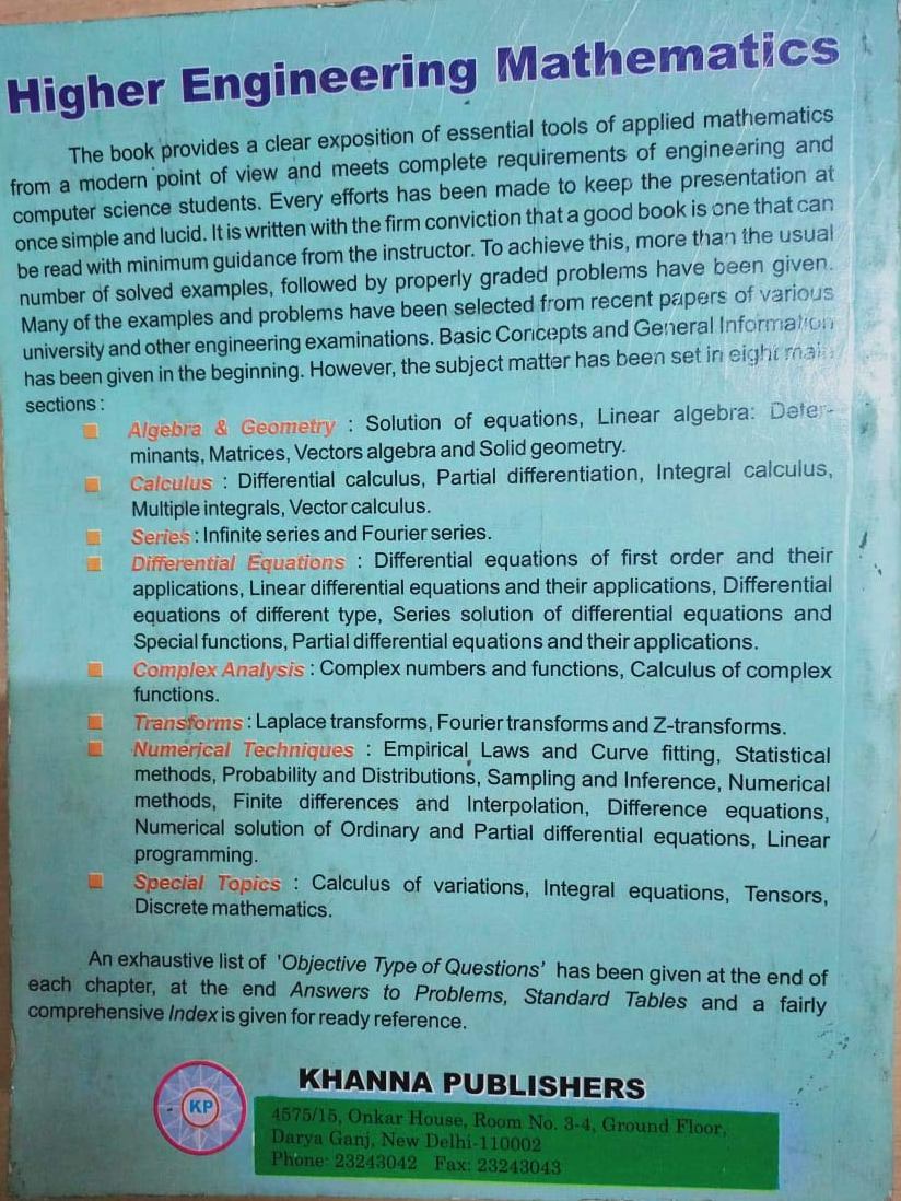 Higher Engineering Mathematics 40th Edition By B.S. Grewal