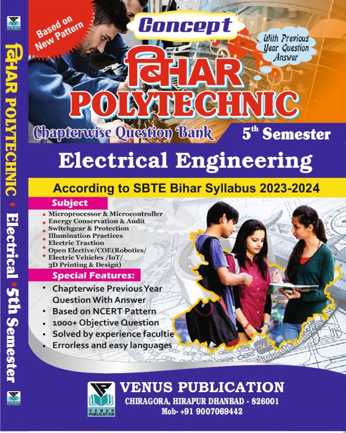 Bihar Polytechnic 5th Semester Question Bank | Chapterwise Question Bank | Yearwise Previous Year | Mechanical Branch | By Venus Expert Team | Venus Publication | Subject -Electric Traction, Energy Conservation and Aduit, Illumination Practices, Microprocessor and Microcontroller, Switchgear and Protection | Elective Subject-Robotics, Electric Vehicles , IOT and 3D Printing|